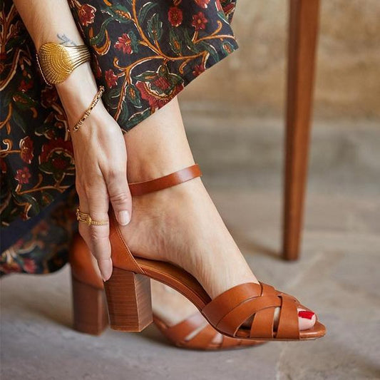 Sandales à Lanières et Talon Haut – Finitions Artisanales